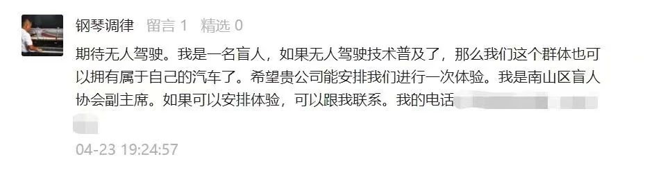 在官宣获得深圳首个智能网联汽车载人应用示范许可的报道后,公司收到了一条不同于以往的留言: